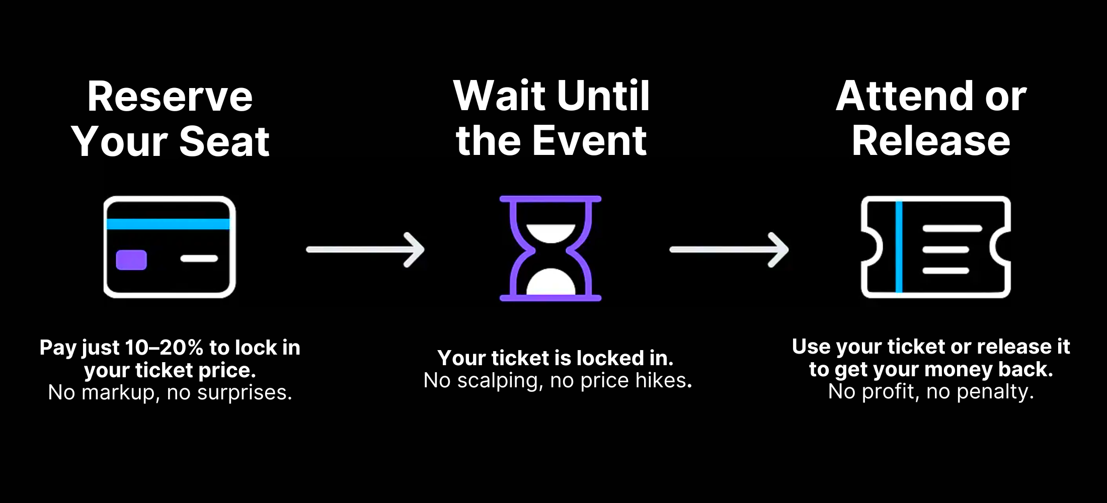 If you can’t attend, release your ticket to the next person in line at the same price — leaving you with no profit and no loss.